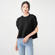 Black Waffle Knit Loose Top - Flexi-Fit (XS–5XL)