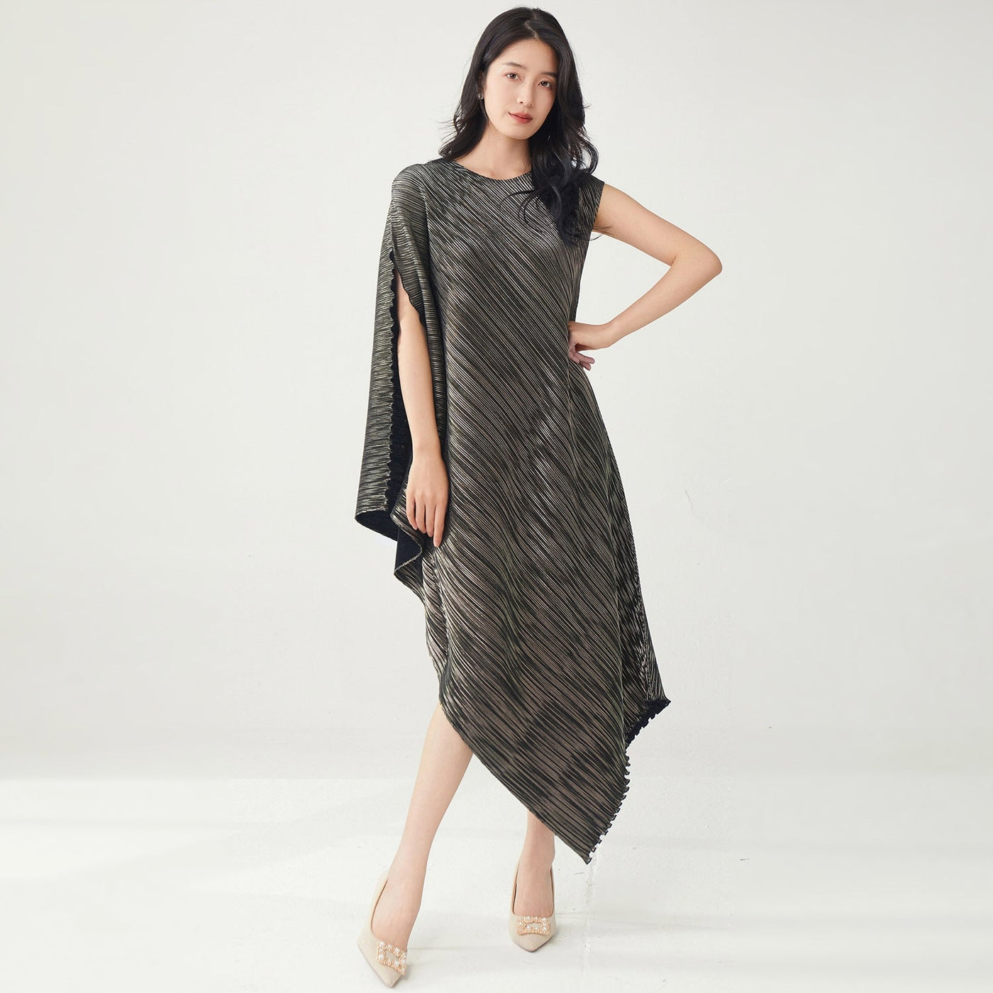 Dynamic Movement: Unlike traditional clothing that fits at one size, Miyaki folds move with the wearer, giving a flattering silhouette for all body types without losing the sculptural elegance of the garment.